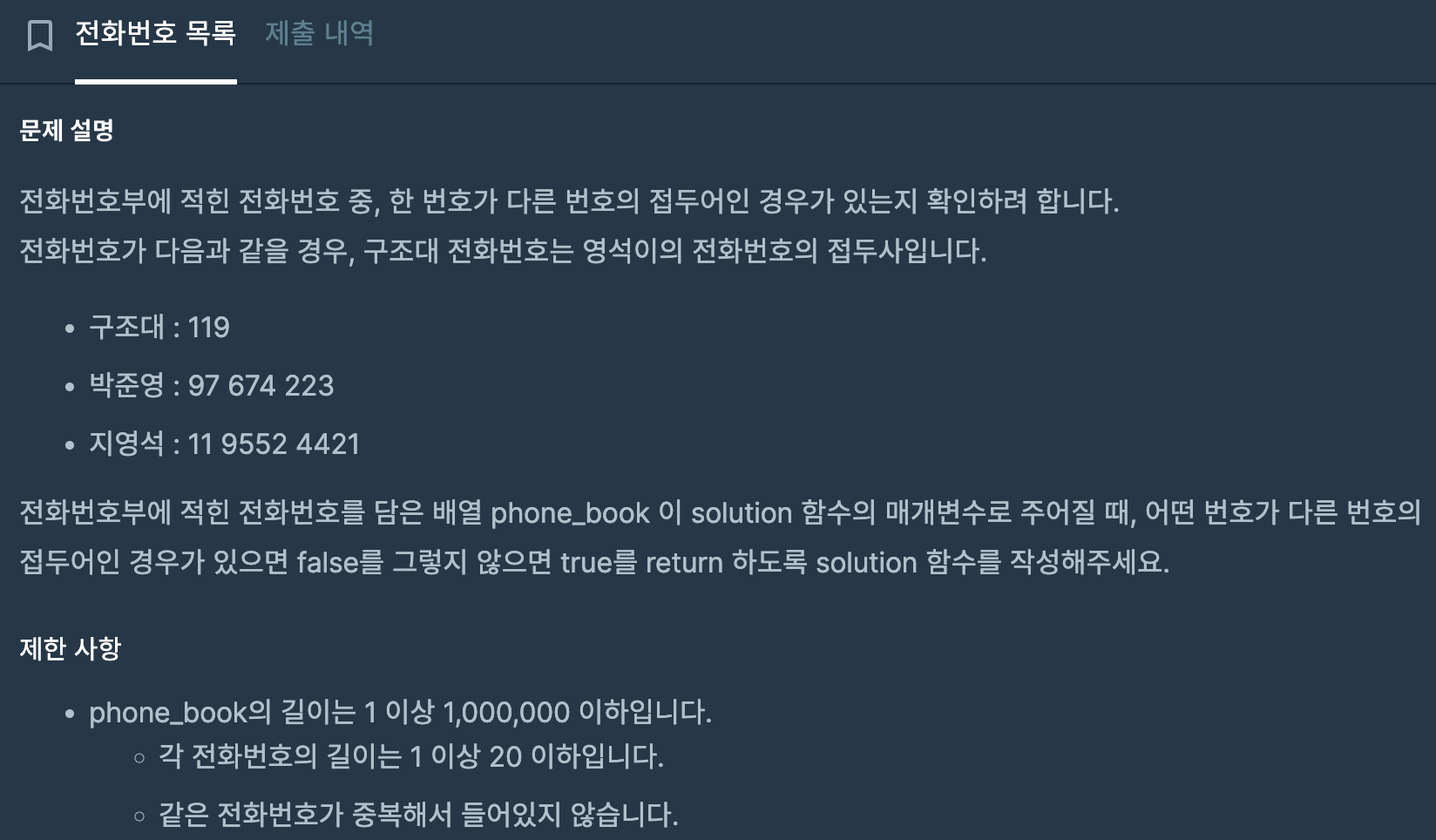 전화번호의 형식이 string이므로, find 함수를 사용하면 포함여부를 확인할 수 있다.
